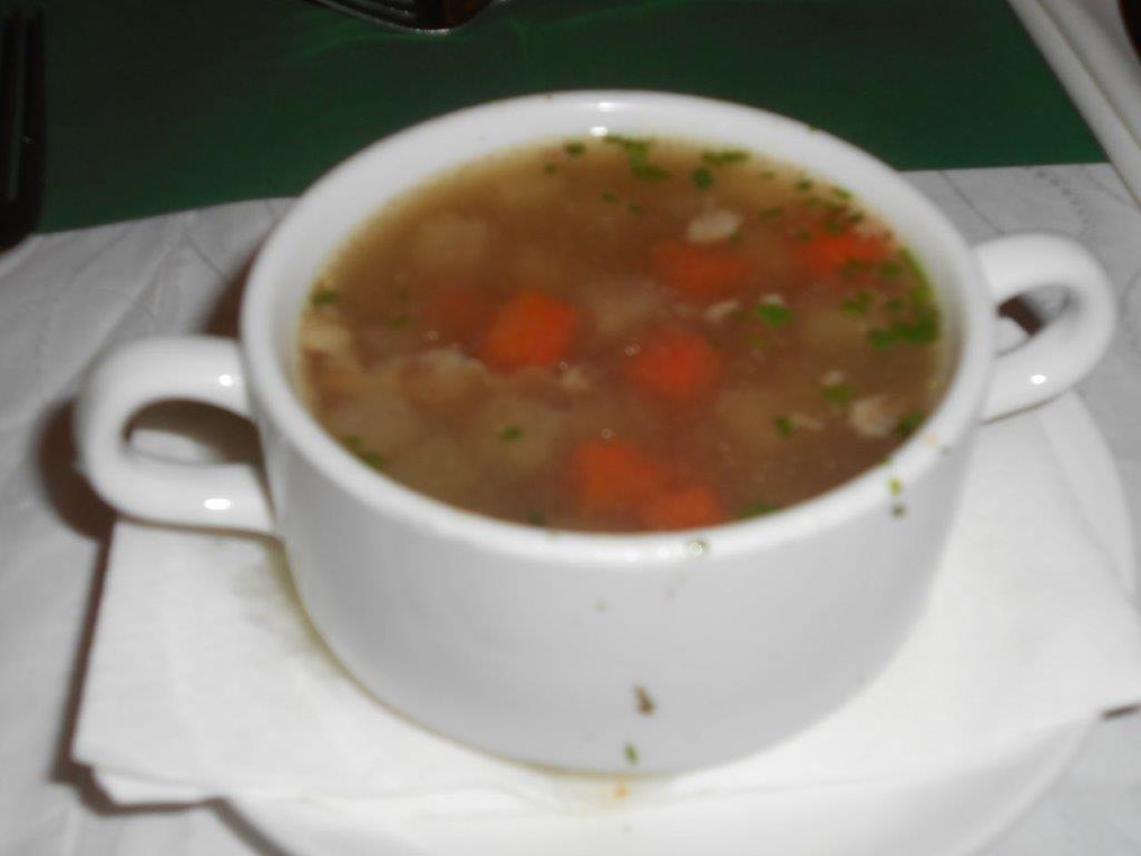 Die zweite, diesmal warme, Vorspeise war eine ausgezeichnete Ganslsuppe mit Gemüseeinlage, Gänsekleine und hausgemachten Teigwaren. Besser kann man Suppe von der Gans nicht zubereiten.