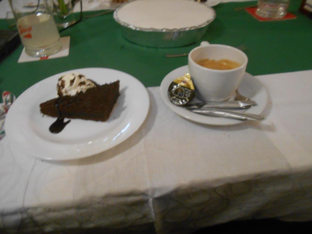 Auch bei diesem Schmaus kamen die Süßmäulchen unter uns nicht zu kurz. Ein selbstgemachter Brownie mit einer Garnitur aus Schlagobers und Schokosauce rundete das Menü gekonnt ab.