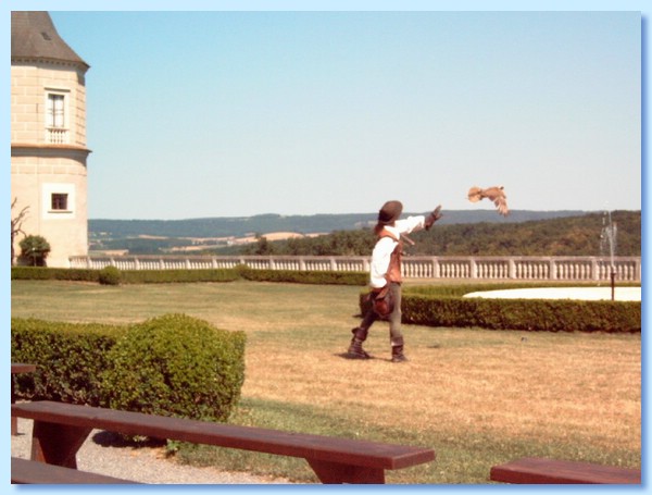 Aussichtsterrasse. Hier haben wir die Vorführung der Greifvögel erleben