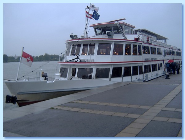 Die Themenschifffahrt der DDSG hatte am 20.5.2008 zur Vollmondnacht zu einer abendlichen Fahrt auf der Donau, von der Wiener Reichsbrücke bis zum Kraftwerk Greifenstein, an Bord der MS Admiral Tegetthoff geladen. Leider hat es der Vollmond vorgezogen sich hinter dicken grauen Regenwolken zu verstecken, dies wurde durch die freundliche Crew der MS Admiral Tegetthoff, sowie dem Bordpersonal, insbesondere dem von uns immer wieder geschätzten Steward Gerald, aber auch der hervorragenden Kombüsencrew, die wie schon bei einigen Fahrten zuvor, ein köstliches, reichhaltiges Buffet aufbauten, wurde dies wieder wett gemacht. Dazu wurde live Musik geboten.