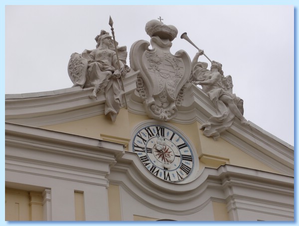 Vor dem Schloss Wilfersdorf erwartete uns schon Herr Hans Huysza u. die große Gruppe wurde in zwei Kleingruppen geteilt und im Wechsel von Frau Huysza durchs Heimatmuseum und von Herrn Huysza durch die Liechtensteinausstellung im Schloss geführt.